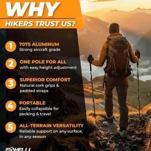 Foxelli Trekking Poles – Lightweight Collapsible Trekking Poles for Hiking Men & Women, Perfect Balance & Support for Seniors