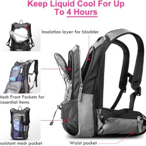 Hydration Pack, Insulated Hydration Backpack with 2L BPA Free Water Bladder and Storage, Hiking Backpack for Men, Women, Kids for Running, Cycling, Camping – Keep Liquid Cool up to 5 Hours
