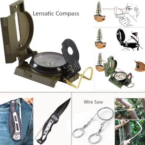 • Survival Kit - Survival Gear and Supplies, Camping Gear, 75-Piece 18-in-1 Kit with First Aid, Compass, Headlamp, Shovel, Axe, Fire Starter, and More. Gift for Men, Boys, Fathers, Boyfriends and Dad